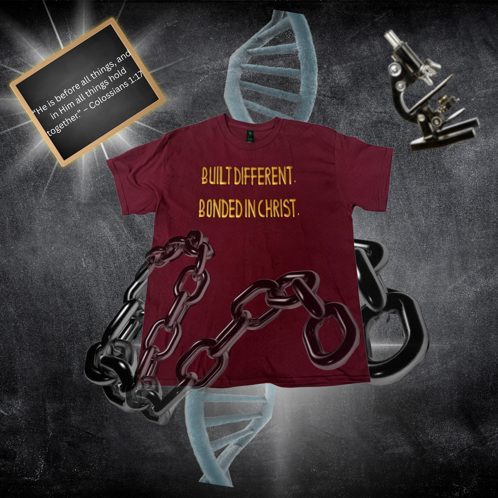 You’ve been set apart, sealed, and strengthened by something this world can’t touch. That’s why you're built different—because you're bonded in Christ. Inspired by Colossians 1:17, this piece declares divine identity and holy resilience.